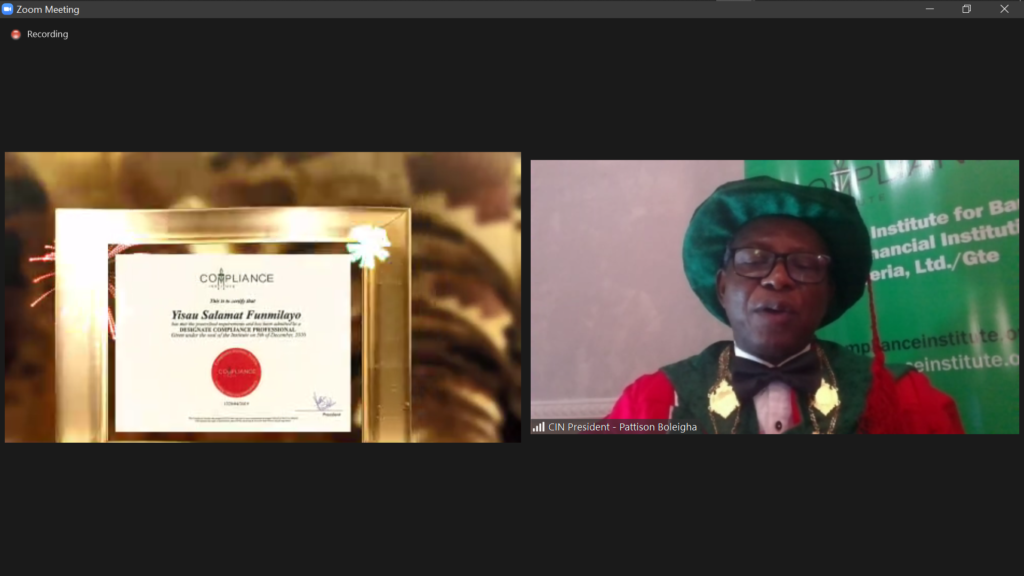 Compliance Institute, Nigeria inducted into its fold a new batch of Compliance Professionals on the 5th of December, 2020.