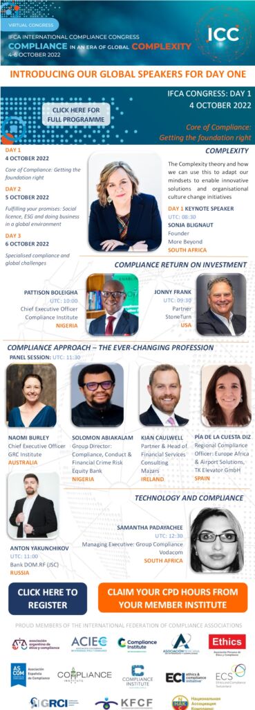 This year’s International Compliance Congress is taking place from 4 – 6 October 2022! Titled “Compliance in an Era of Global Complexity” this event will engage 14 global member associations and provide insight into the latest in global compliance. Click the link below to download the IFCA Congress programme: https://complianceinstitute.org.ng/download/22747/ DON’T MISS OUT. Register for […]
