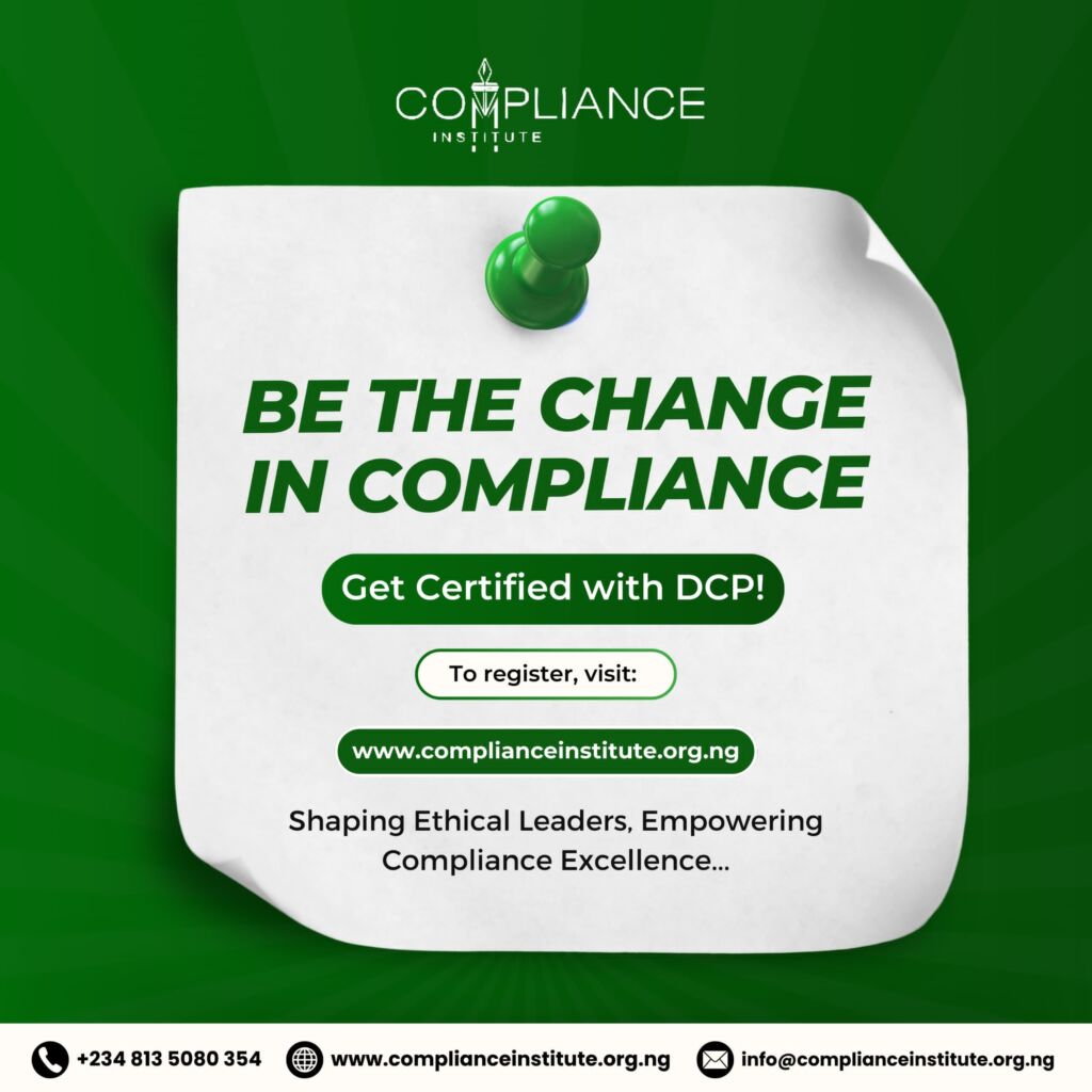 Start 2025 by taking your career to the next level! Join the first batch of Designated Compliance Professional (DCP) for this year. Be part of a pioneering group setting new standards in compliance. Registration is ongoing, using the link below https://complianceinstitute.org.ng/ 🌟 #JoinDCP2025 #ComplianceLeadership